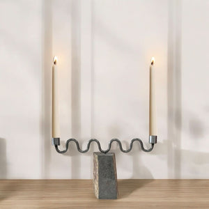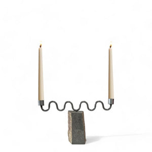 The Aria Candle Holder is made using river rock and raw iron. Both stone and metal craftsmen from Sabana Grande Honduras collaborate to create this collection. Up to 8” taper.