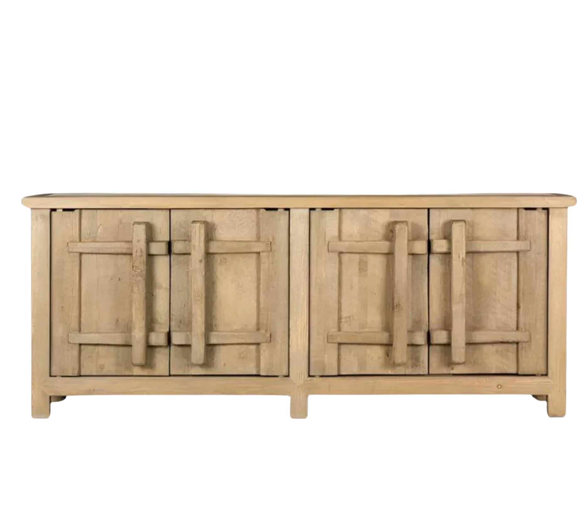 Functional, classic and neutral. This weathered wood sideboard boasts four doors with lots of shelving, lending itself to a range of interiors from coastal to scandi-rustic.