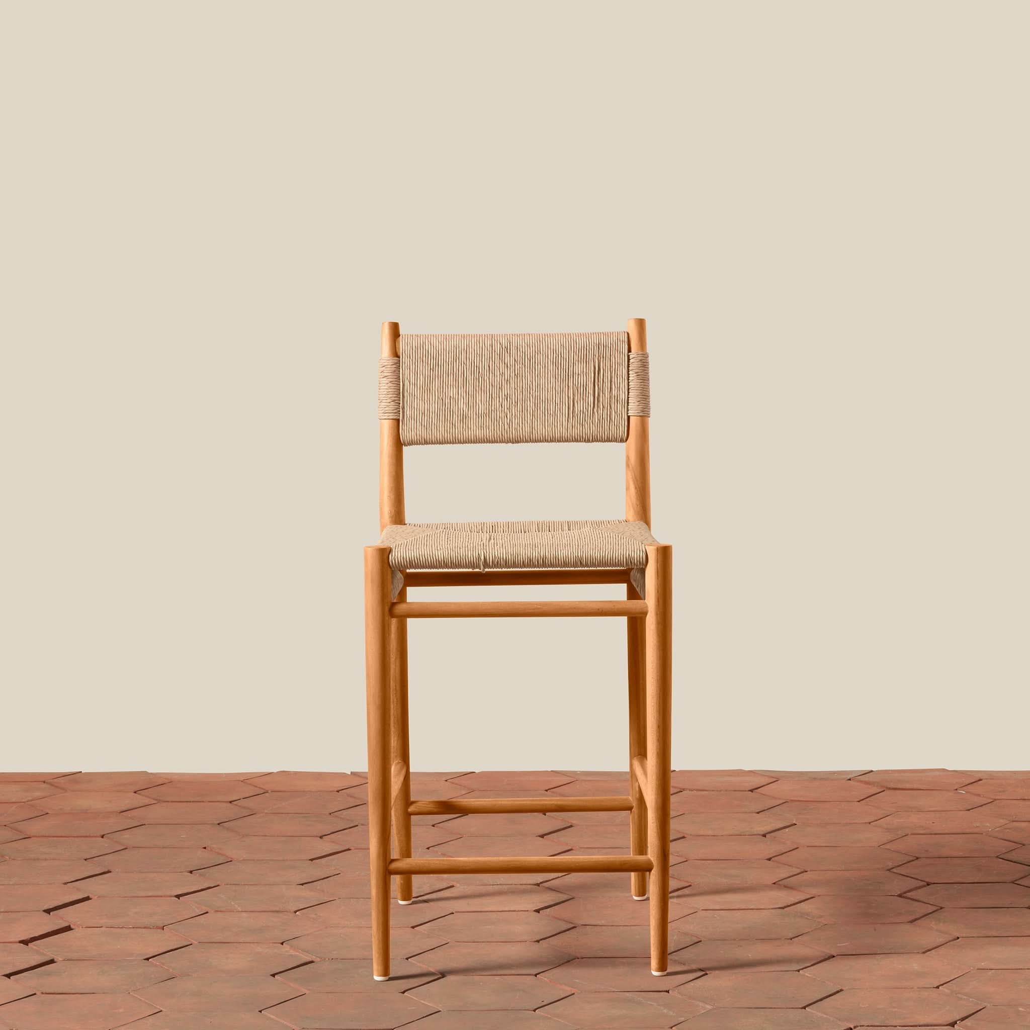 Experience the sophistication of the Alma Indoor/Outdoor Counter Stool, made with a slim, tapered teak frame and an intricate weaving pattern. The all-weather performance rush provides an elegant yet durable option for outdoor dining or high traffic kitchen dining areas. Thoughtfully handcrafted with sustainably harvested SVLK teak and recyclable cord.
