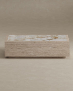 Elevate your living space with the Palermo Travertine & Onyx Coffee Table, a perfect blend of modern design and timeless elegance. Crafted from luxurious beige travertine and striking onyx, this coffee table stands out as a unique statement piece. Its harmonious combination of two distinct materials creates a visual intrigue that sets it apart from any other coffee table.