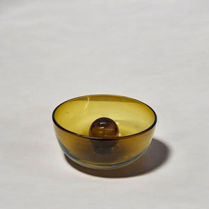 The Tres Palos bowl is made using recycled glass by artisans in Gualajara Honduras. Amber color. _______ Amber 100% recycled glass. ________