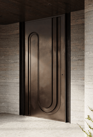 Crafted from copper, the Flow Door is a manifestation of the wavy nature of water and its fluidity. With a curved in-built handle, it brings out characters of functionality and conveys the story of being a living art. The artisanal and seamless blend of black, brown, and red hues connotes the rhythmic movement that defines water’s lucidity and uniformity. The echoes of the deep sea can be heard resonating through the copper surface. The door's metal skin is handcrafted, made by our artisan partners in India.