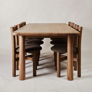 Made of solid white oak, the Topa Topa Dining Table in Mocha is designed to bring a playful look to your space. Introduced in a new Mocha color, this finish evokes a sense of warmth and nostalgia. The piece has an oil finish used to highlight the beautiful grain of the wood, topped with a protective coating for durable protection against food and liquid spills.