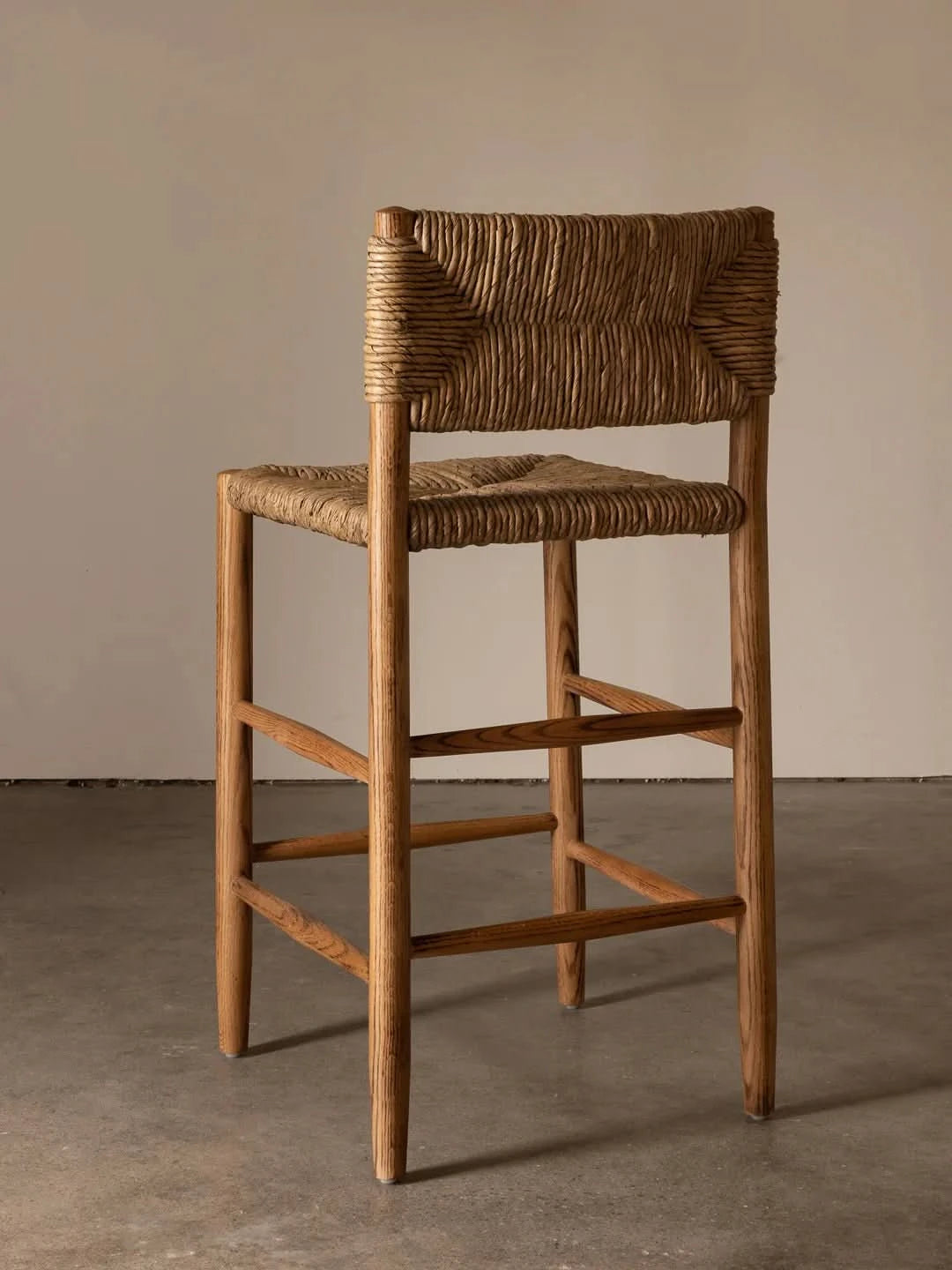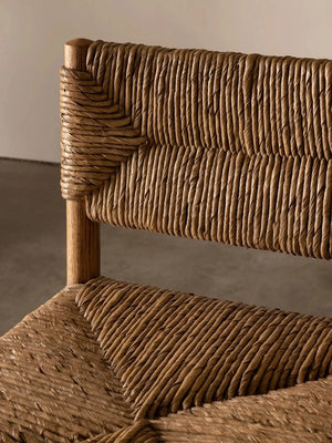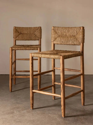 Featured in Style Magazine. The Arnaud Counter Stool embraces a classic silhouette with its square back andangular aspects, paired with tapered carved legs and stretcher detail. With a woven rush seat and warm oak palette, the Arnaud Counter Stool marries function with comfort through the harmony of natural elements.