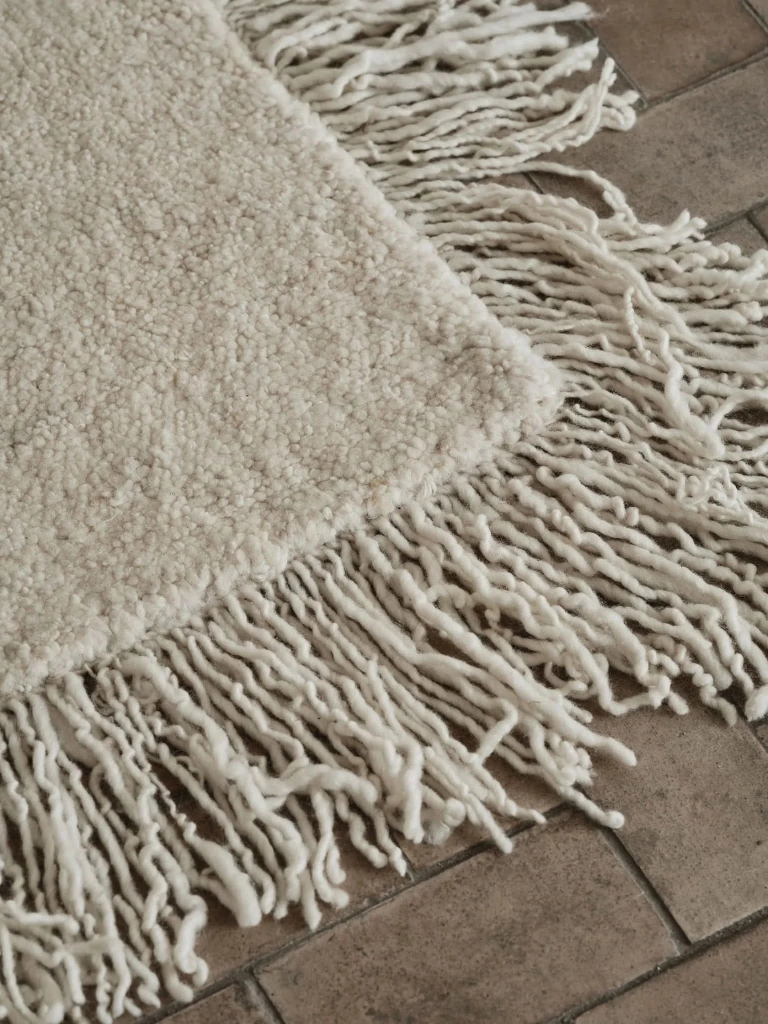 The rug is woven in natural and unbleached New Zealand wool and comes in a chalky off-white shade. An iconic piece to keep and love for a lifetime.