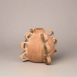 La vasija Lux de MESO está hecha a mano por artesanos en Sabana Grande, Honduras. Solo para uso decorativo. Acabado en terracota. ________