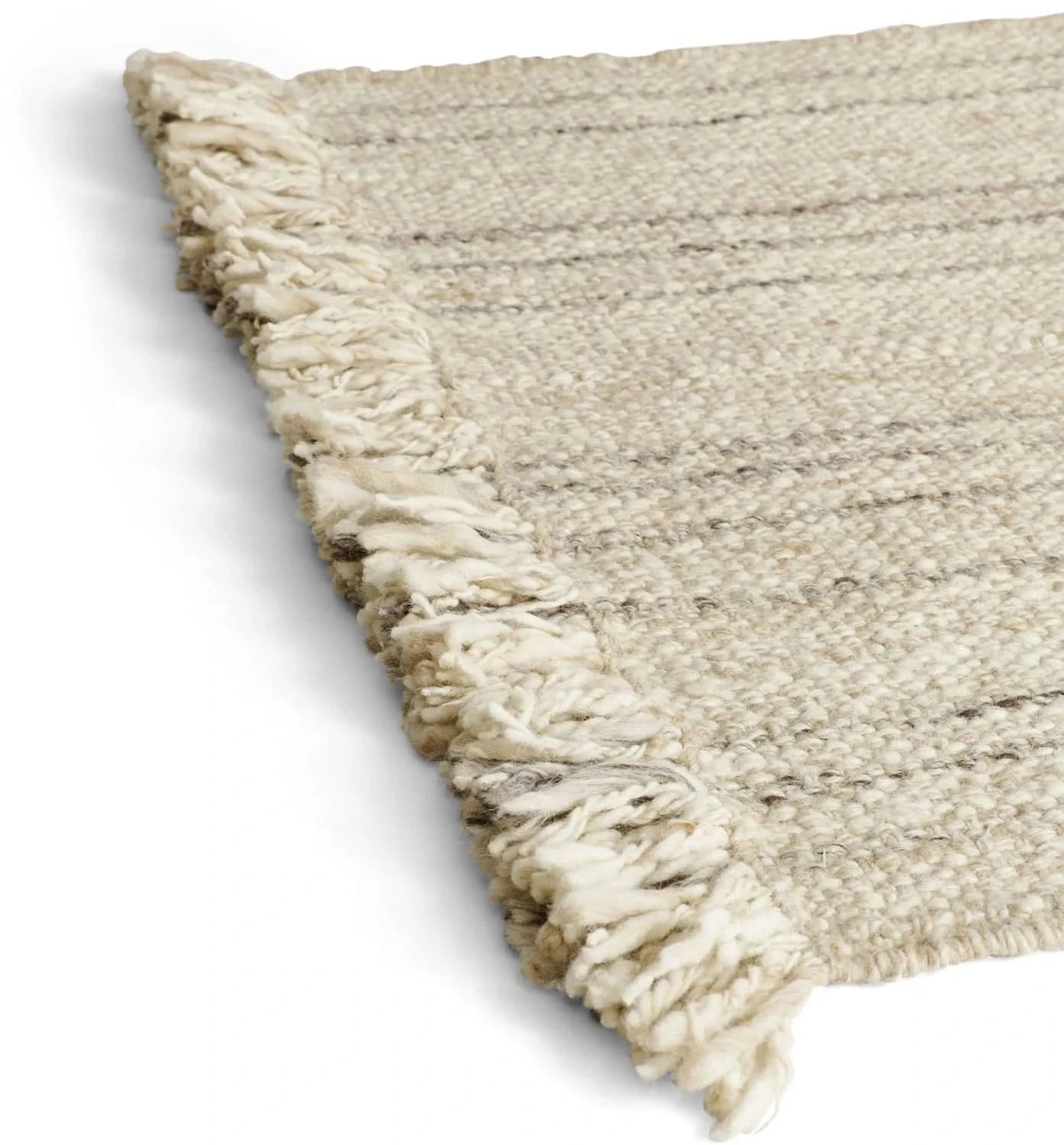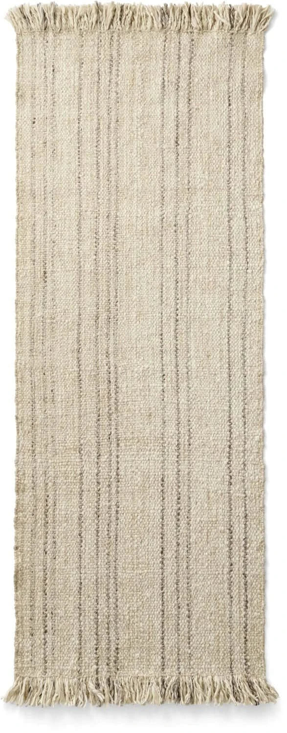 ColumnataLa alfombra n .° 06 es delana tejida a mano, diseñada para espacios estrechos. Presenta un delicado tono beige jaspeado claro, adornado con sutiles rayas gris-marrón más oscuras, creando un efecto armonioso y delicado. Esta columnata está diseñada con la urdimbre a modo de flecos que realzan el diseño, aportando detalles adicionales y creando un ambiente sereno en la habitación.