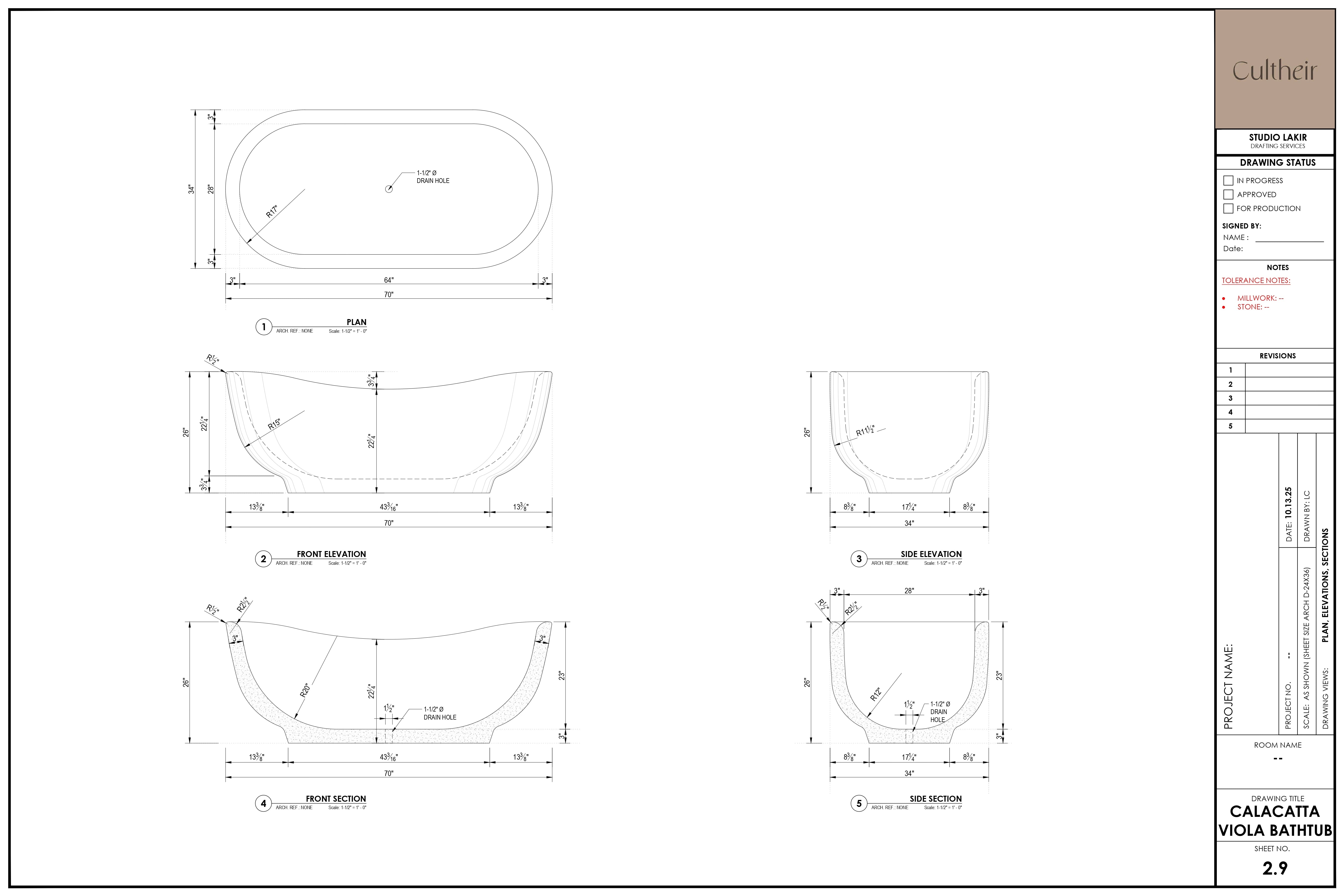 Bañera Calacatta Viola Tallada a mano a partir de un único bloque macizo.Se puede proporcionar dibujo técnico si se solicita.