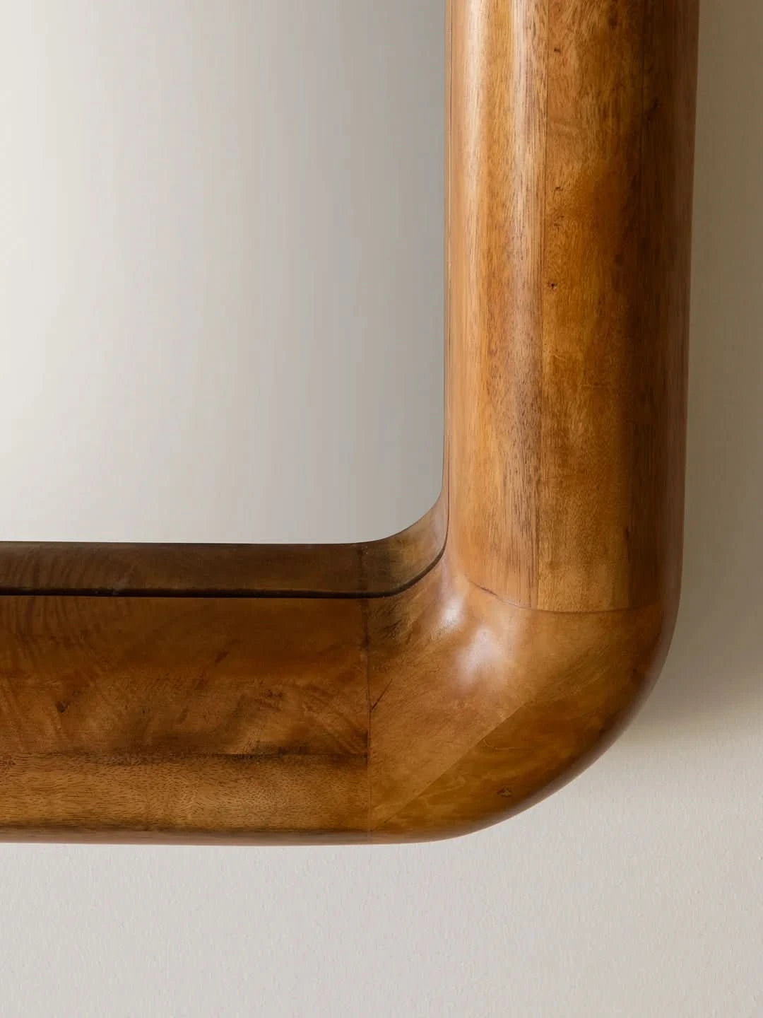Buttery curves meet timber's natural warmth to give the Dora Mirror its voluptuous, yet equally elevated, silhouette. A centrepiece on its own, above a vanity, powder room or hallway console, the Dora Mirror is disarming in its quiet beauty and both a contemporary and sculptural object.