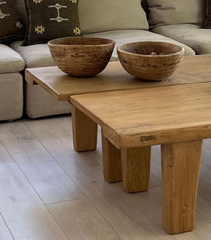 Fabricada con madera de olmo reciclada, la mesa de centro Elm Senufo es una pieza atemporal que puedes incorporar a tu espacio y crear una declaración. El complemento perfecto para recibir invitados o para colocar el café de la mañana y los libros. Con más de 100 años de antigüedad, estas mesas son únicas y exclusivas.