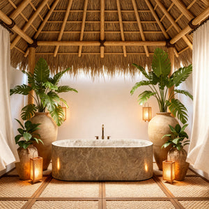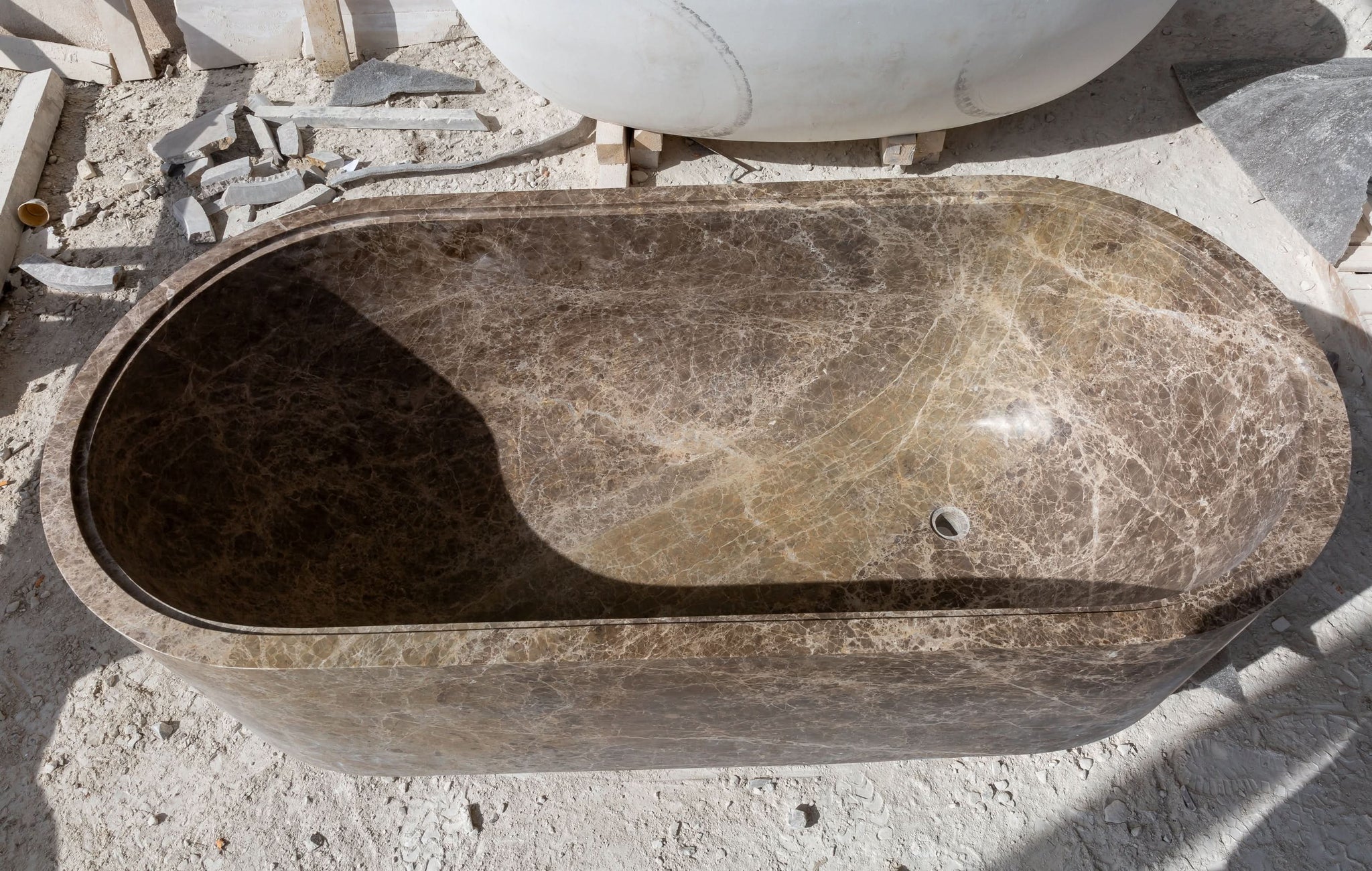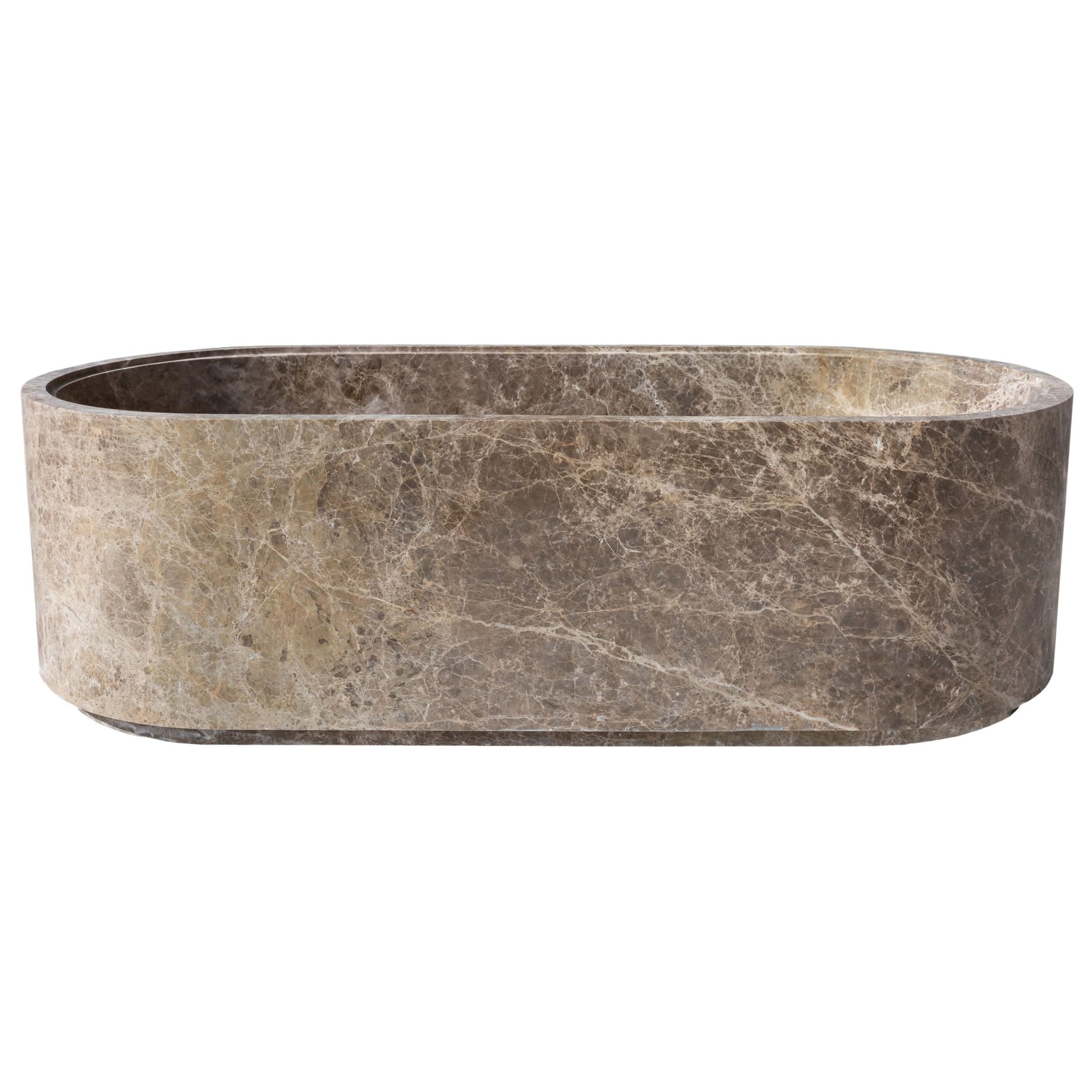 Bañera de mármol Emperador Light tallada a mano a partir de un solo bloque sólido. Fabricada artesanalmente por nuestros especialistas turcos, esta bañera presenta un diseño clásico y elegante, libre de químicos y de forma natural. Presenta una superficie lisa y no porosa con una capa marmórea de gran belleza y durabilidad. Fabricada en piedra natural de primera calidad, resistente a los cambios de temperatura, con un esmaltado superior y elegantes acabados interior y exterior pulidos o brillantes.