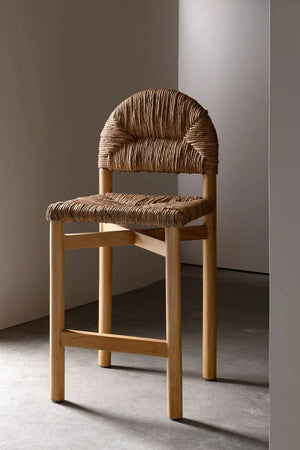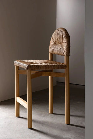 Destacado en la revista Style . El taburete de mostrador Grace es una versión alargada de nuestra silla Grace, nuestra superventas. Inspirada en los diseños de la arquitecta francesa Charlotte Periand, la silla de comedor Grace combina diseño y comodidad para crear un mueble funcional que se fusiona con la belleza de sus elementos naturales. Fabricada en roble macizo y junco trenzado que se extiende hasta un suave arco en el respaldo, la elegancia de sus proporciones le da su nombre.