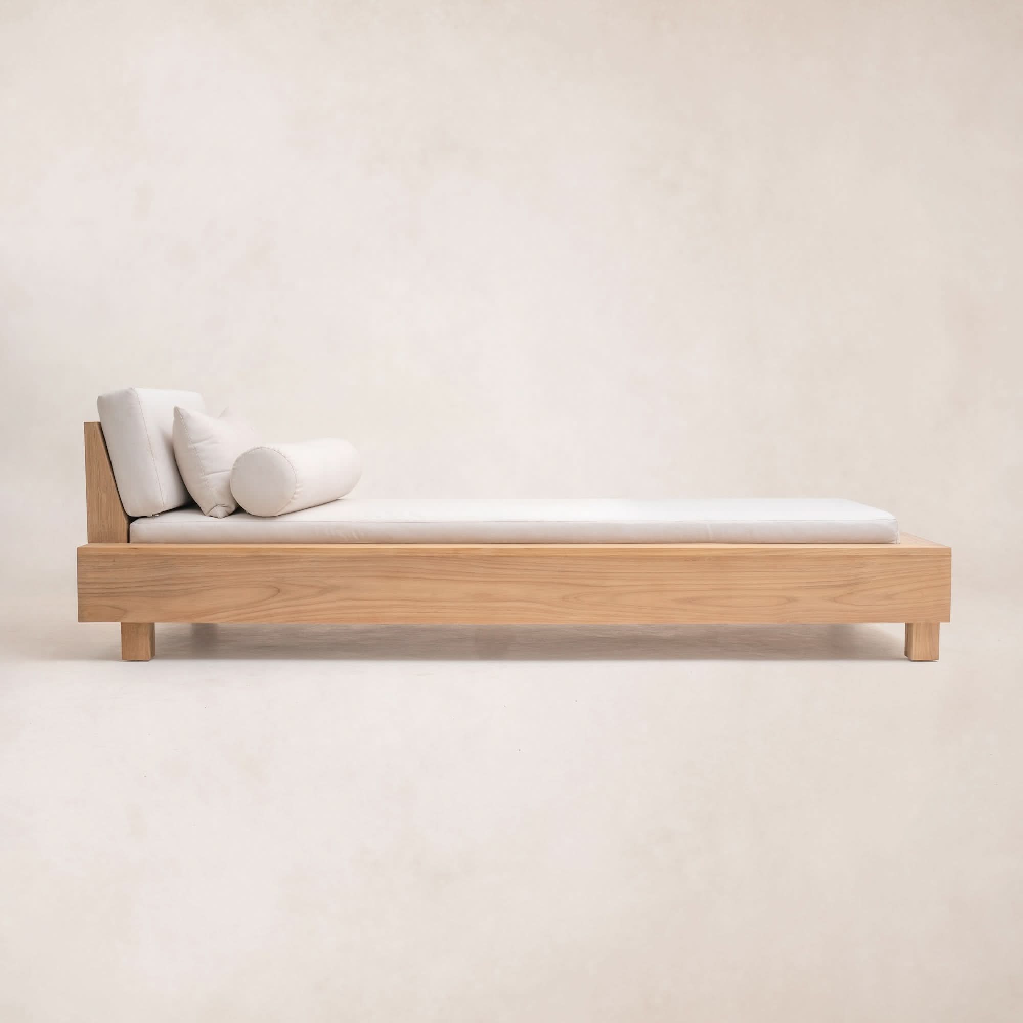 Experimente la serenidad al aire libre en su máxima expresión con el sofá cama Ojai. Nuestra versión de una tumbona clásica, el sofá cama Ojai cuenta con una sólida estructura de teca que ofrece una sensación de lujo y un diseño impactante que los sofás cama estándar no ofrecen.