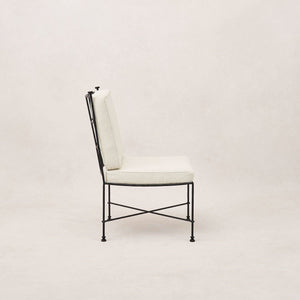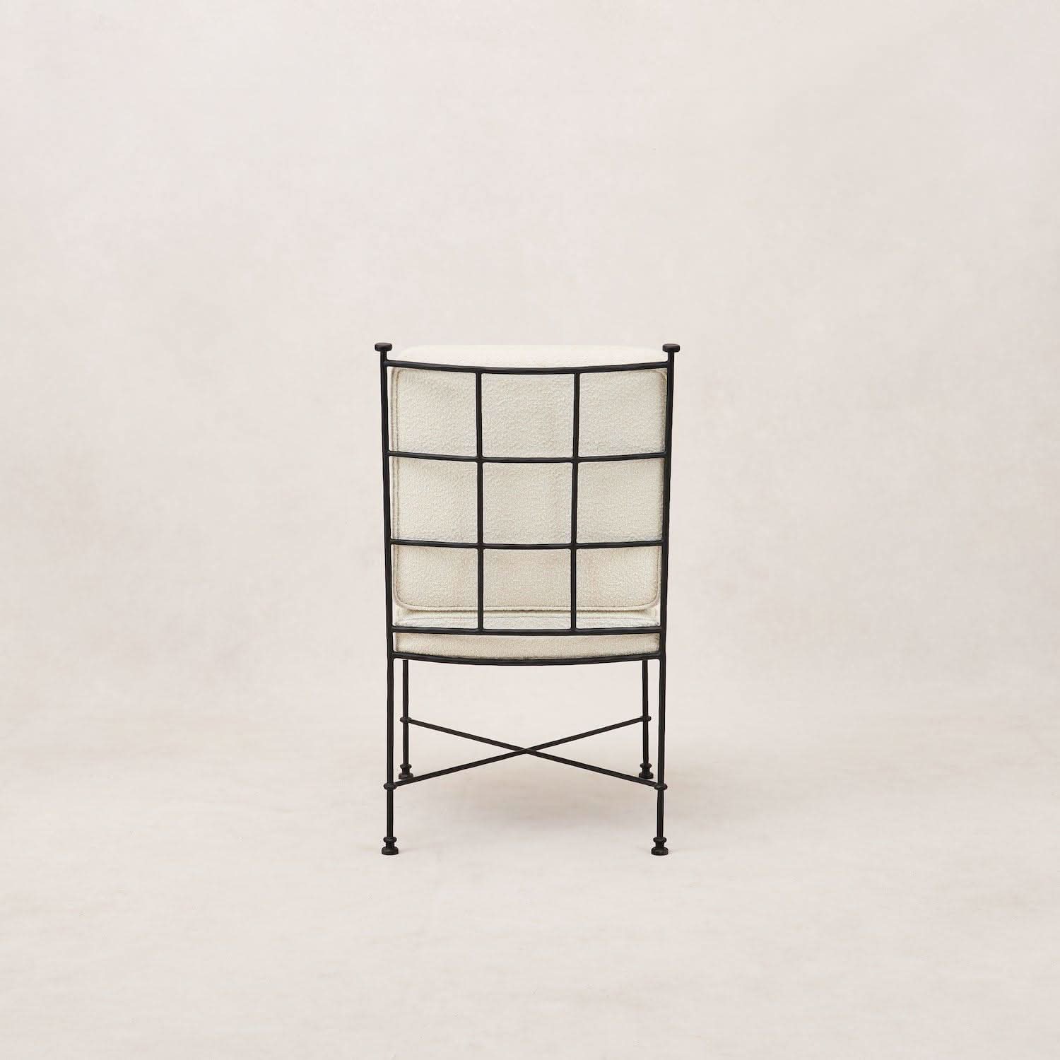 Fabricada artesanalmente con una esbelta estructura de hierro y tapizada en suave bouclé para exteriores, está diseñada para resistir las inclemencias del tiempo y ofrecer una comodidad duradera. Con los cojines recogidos, la estructura se mantiene hermosa por sí sola, conservando la estética de su espacio exterior durante todo el año.