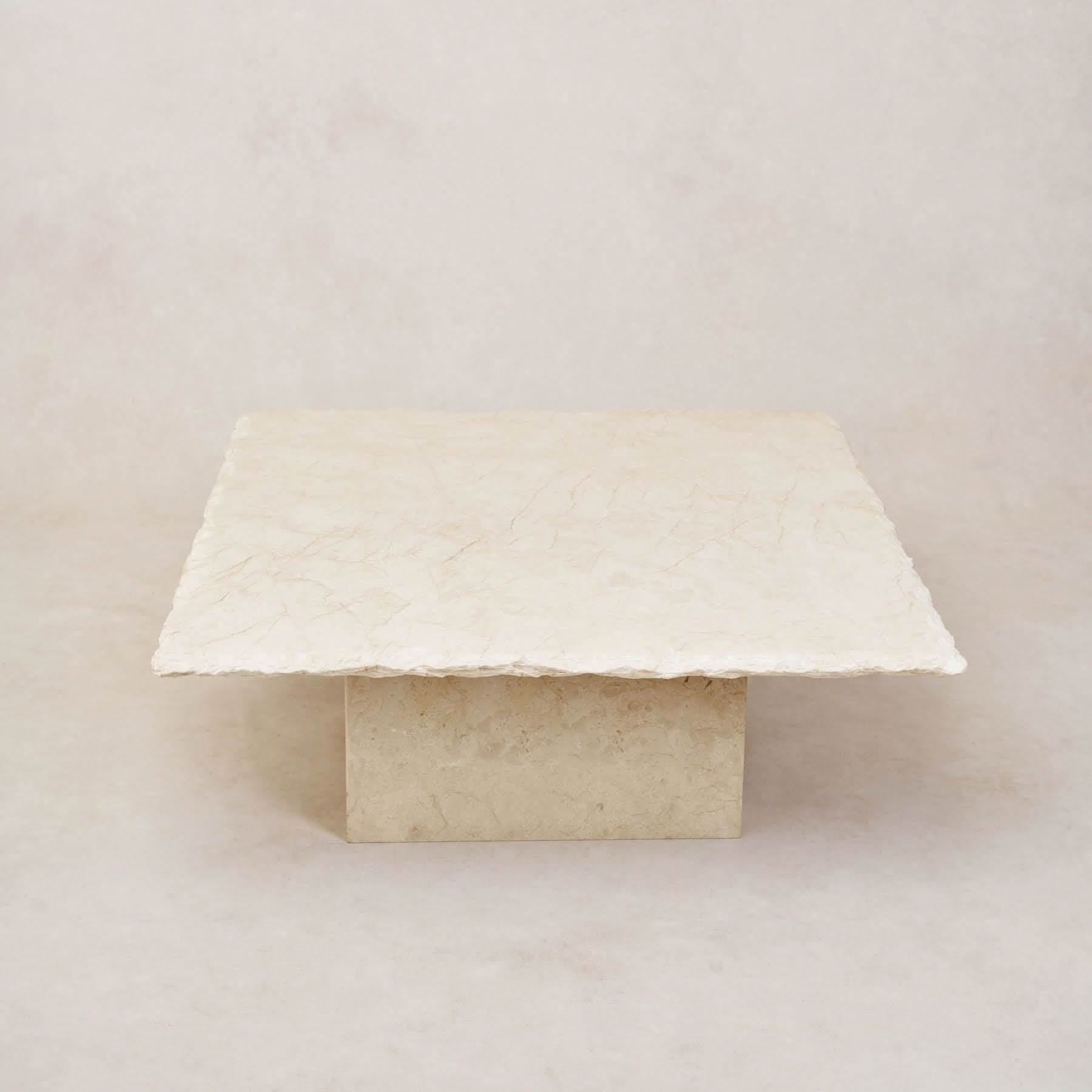 La mesa de centro de mármol Sofita más vendida ahora está disponible en una versión cuadrada para mayor versatilidad.