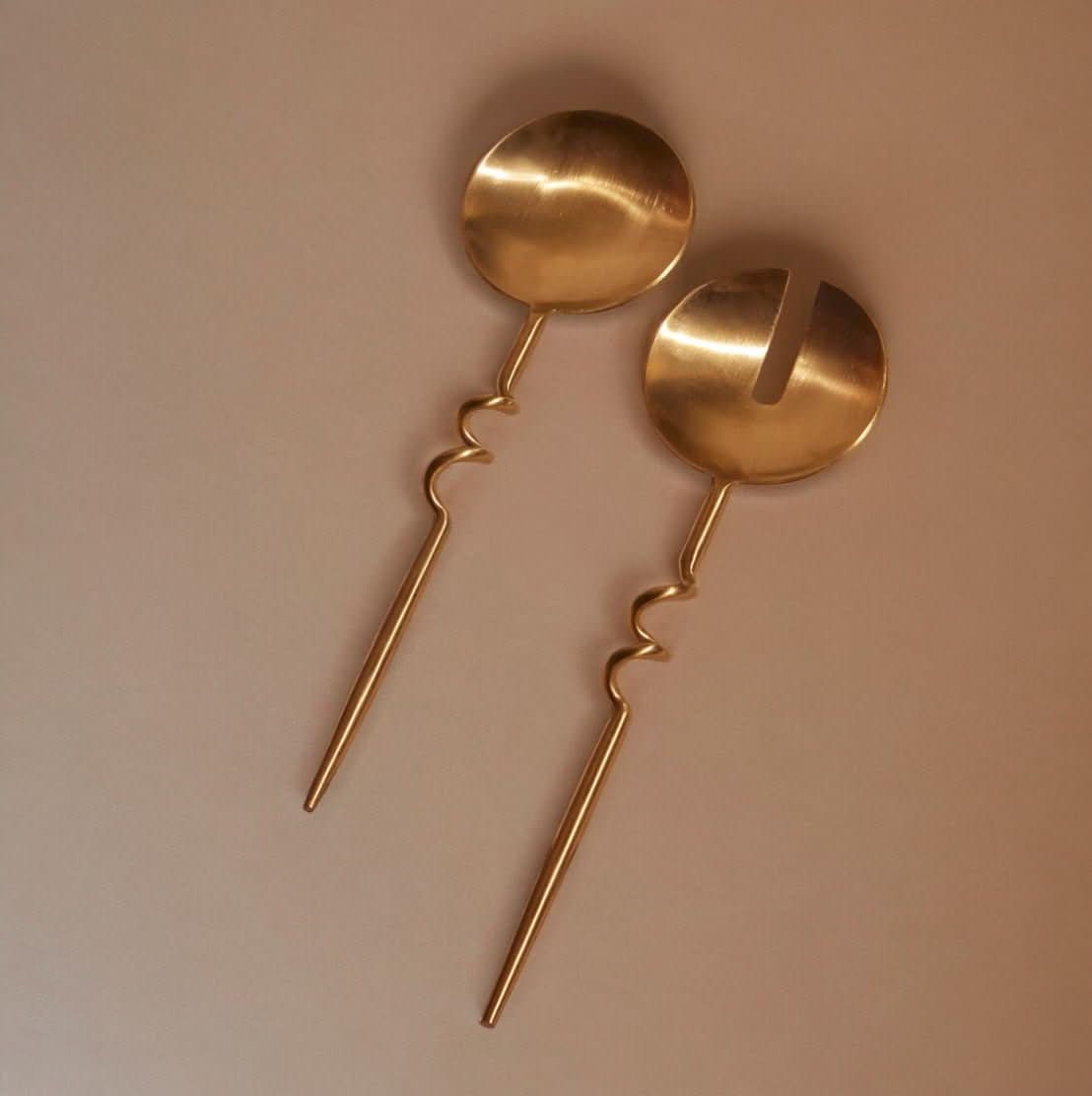 Couverts en acier inoxydable avec finition en laiton brossé.