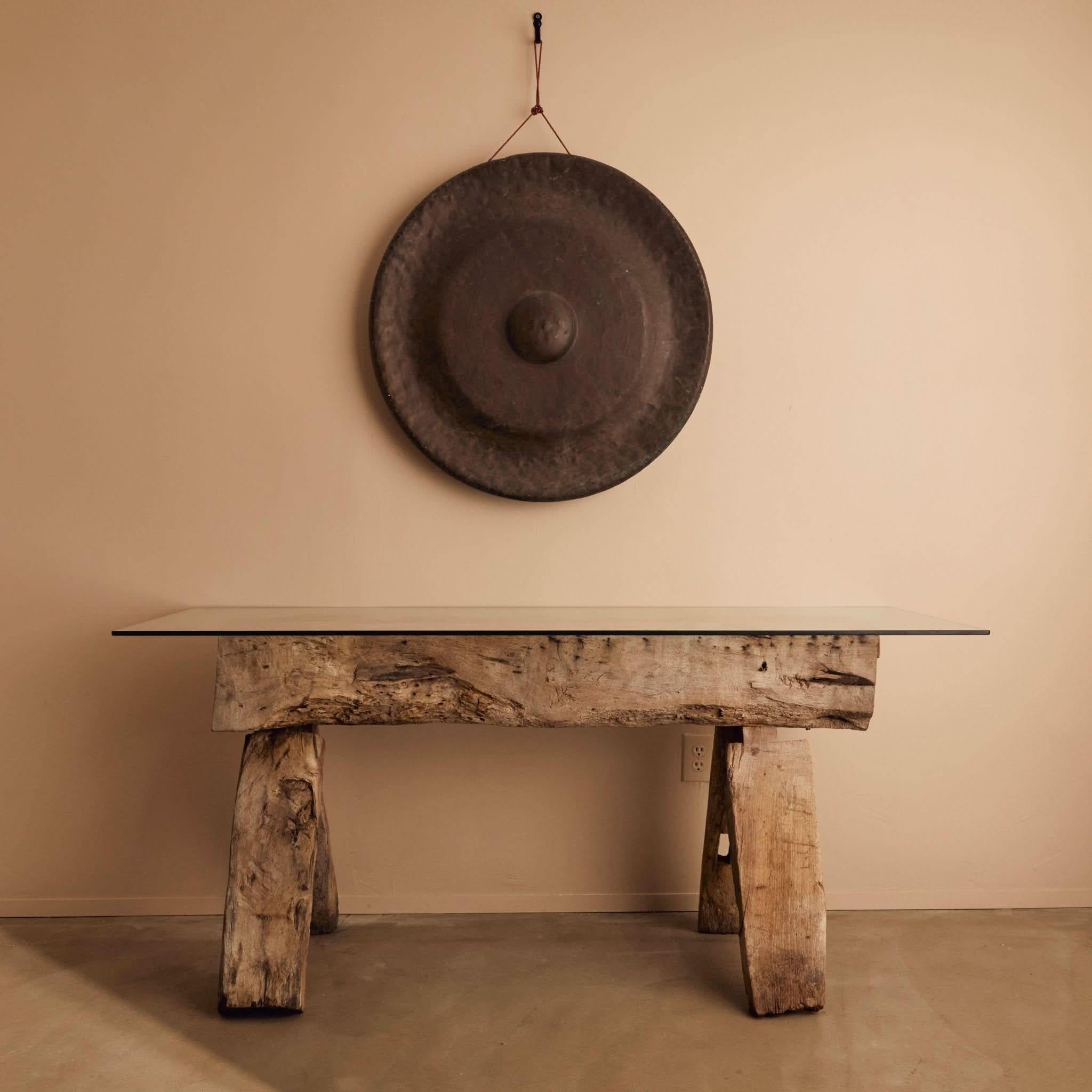 Ce magnifique gong, datant du milieu du XIXe siÚcle, est un instrument précieux utilisé lors du célÚbre Wayang Kulit, un spectacle de marionnettes trÚs prisé en Indonésie. Le théùtre d'ombres est populaire dans diverses régions du monde, notamment en Chine, en Inde et en Turquie, mais il a atteint un niveau exceptionnel à Java. Il est généralement présenté lors de représentations de huit à neuf heures qui durent toute la nuit.