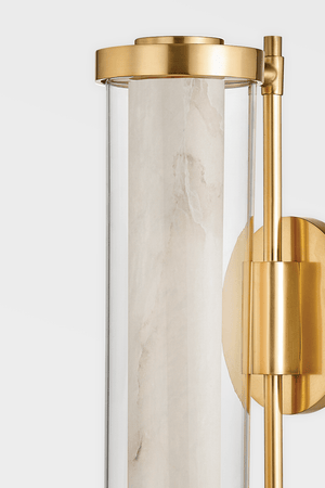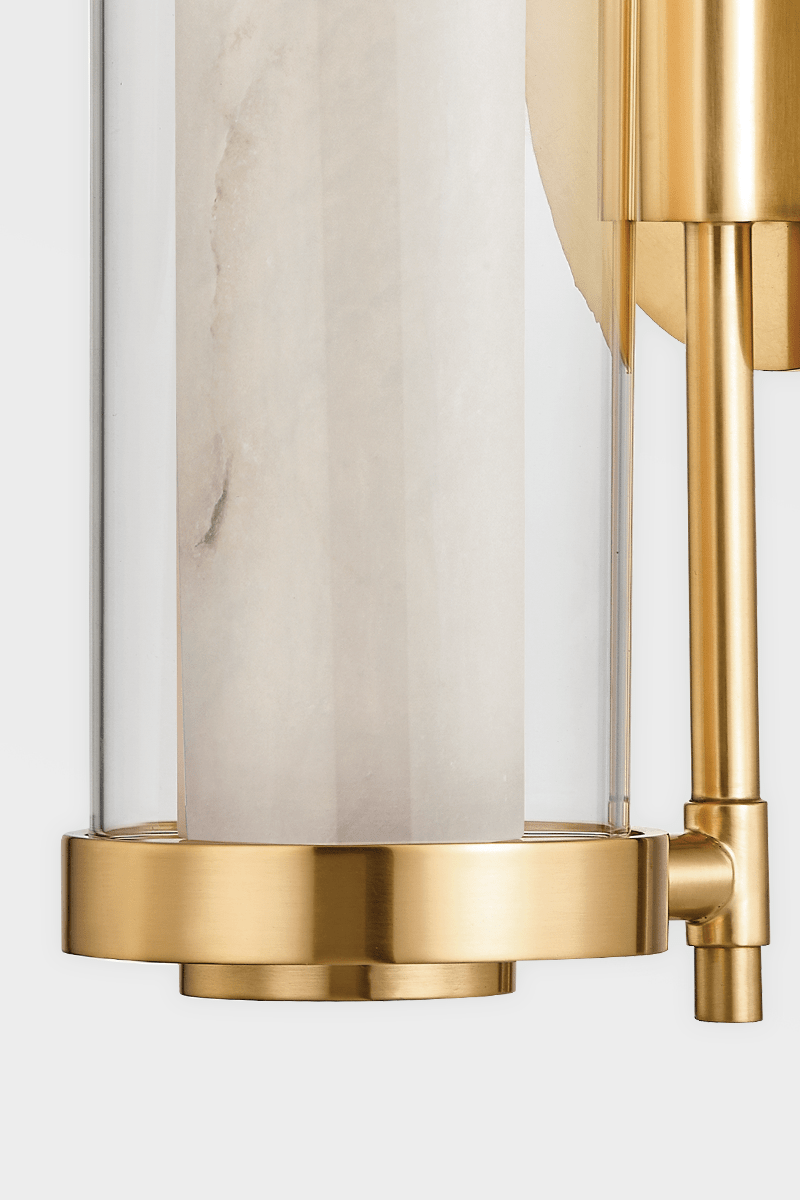The Catrina Wall Sconce features a vintage brass finish, adding a touch of sophistication to any space. This modern wall lighting solution boasts a cylindrical design, complemented by a stunning glass and alabaster shade. As an integrated LED sconce, it provides efficient and stylish illumination, making it a perfect wall lamp for contemporary interiors. Elevate your décor with the Catrina brass wall sconce, a versatile and elegant addition to any room.