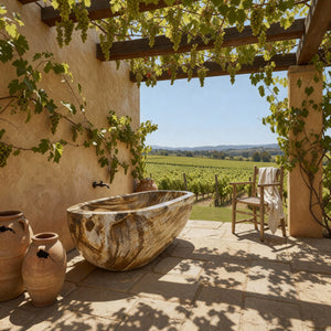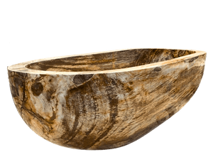 Formée à partir d'un bloc de bois fossilisé provenant de la province indonésienne de Java oriental, il faut entre 10 000 et des millions d'années pour qu'un arbre s'ossifie ainsi. Des troncs de pierre sont extraits du sol et taillés en dalles. Celles-ci sont ensuite transformées en baignoires, sculptées par des tailleurs de pierre pendant quatre à six semaines. L'avantage de ce procédé : vous pouvez concevoir la baignoire selon vos besoins, de 1,80 à 2,40 mÚtres de long, et avec la forme qui convient le mieux à votre salle de bains.