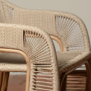 Inspired by the twisting vines of wine country's vineyards, the Glen Ellen Arm Chair offers effortless elegance in indoor and outdoor spaces. Featuring sustainably harvested rattan wrapped with performance rush, this stylish seat will take you through seasons to come.