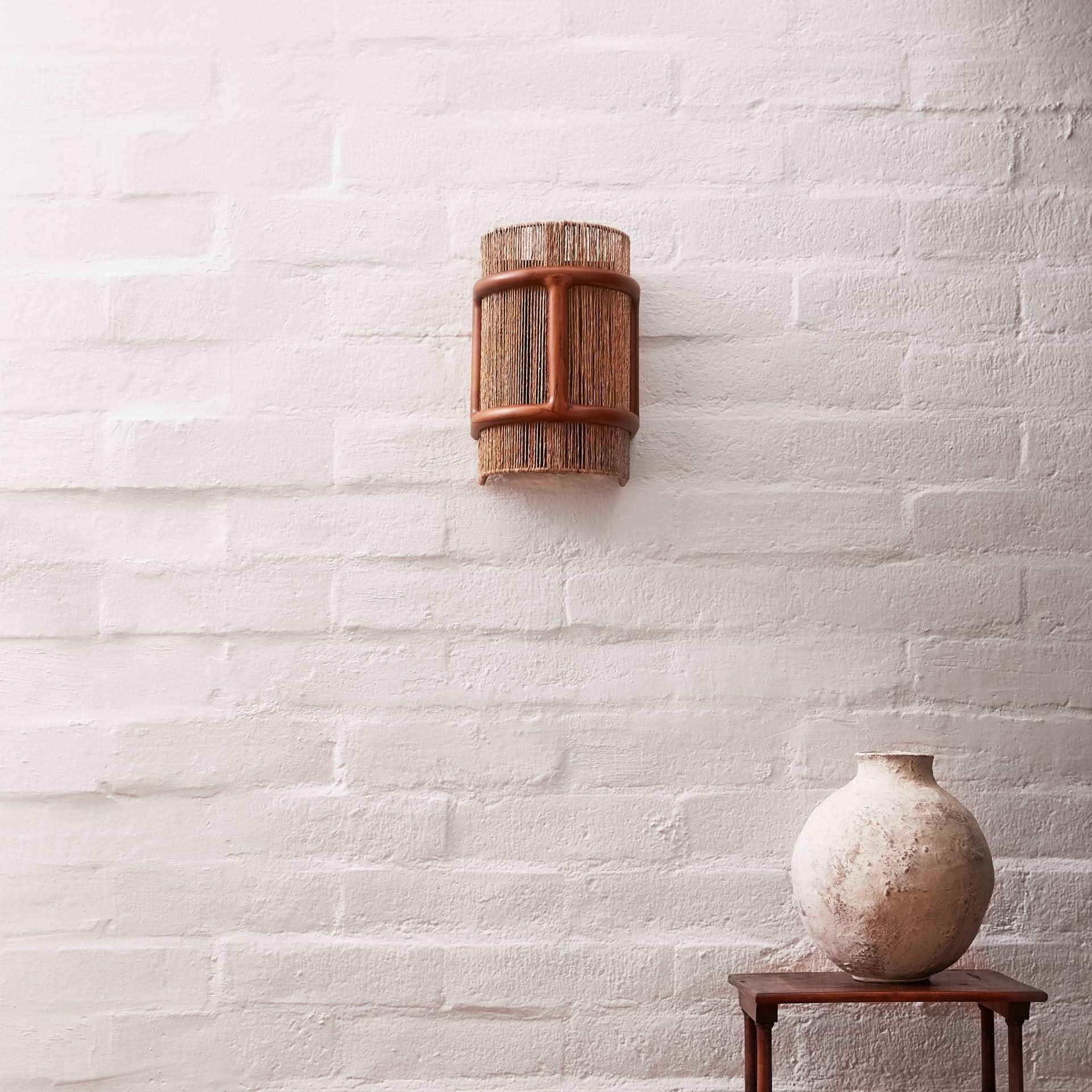 Blank sunwashed walls of any material offer a perfect canvas for this expertly wrapped jute sconce, framed in warm and sculptural beechwood. The harmony between the vertical lines of jute and solid beechwood frame lends a textural touch to bedrooms, bathrooms, and hallways—adding interest without distraction.